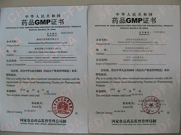 2014年3月9日我司頭孢固體制劑車(chē)間通過(guò)海南省2010年版GMP認(rèn)證。